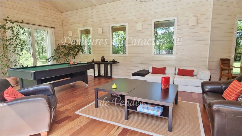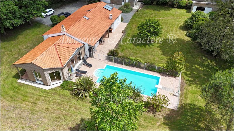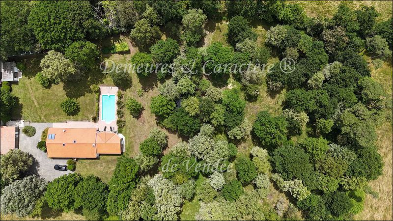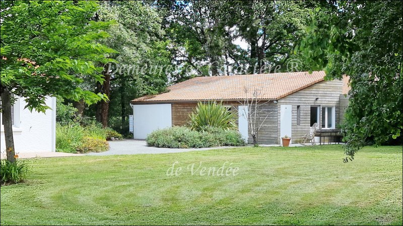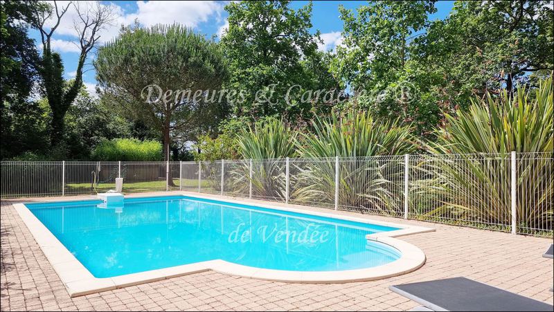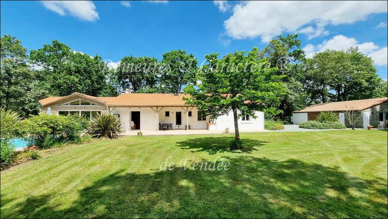 85 – À 3 km des commodités du village, à 6 km de CHALLANS, 15/20 km des plages et de l'île de NOIRMOUTIER, Propriété d’environ 1 hectare dont Maison de plain-pied de 183 m² (4 chambres) + diverses terrasses, piscine chauffée, parc boisé, garage et petites dépendances. Site calme et agréable.