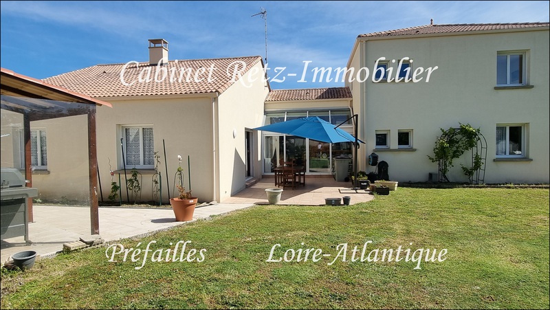44 – PREFAILLES – À 500m centre-bourg, 750m plage, 3km port, 7km golf 18 trous de PORNIC, confortable maison 250 m² / 4 chambres (7 possibles), géothermie, belle hauteur sous plafond, garage communicant, … + belle dépendance indépendante (aménageable pour divers projets ; location ou division revente possible). L’ensemble en très bon état général sur 2433m² clos (dont 2000m² piscinables / constructibles / divisibles ). GRAND POTENTIEL POUR NOMBREUX PROJETS