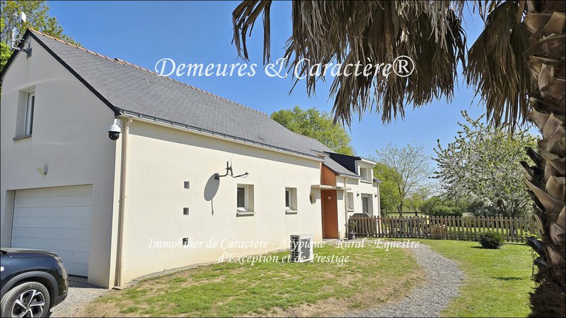 44 - Vente Propriété équestre située entre NANTES et ANGERS, sur 10 hectares dans le Secteur d' ANCENIS, au calme et proche de tous services et commodités. Comprenant confortable maison 184m² (4 chambres, possibilité 5) + garage, terrasses, dépendances, jardin clos, parc à chien et infrastructures équestres de qualité idéales pour privé ou professionnel dont carrière 64x35 et rond de longe. Situation permettant départ en trotting et balade à cheval depuis la propriété. Offre rare !