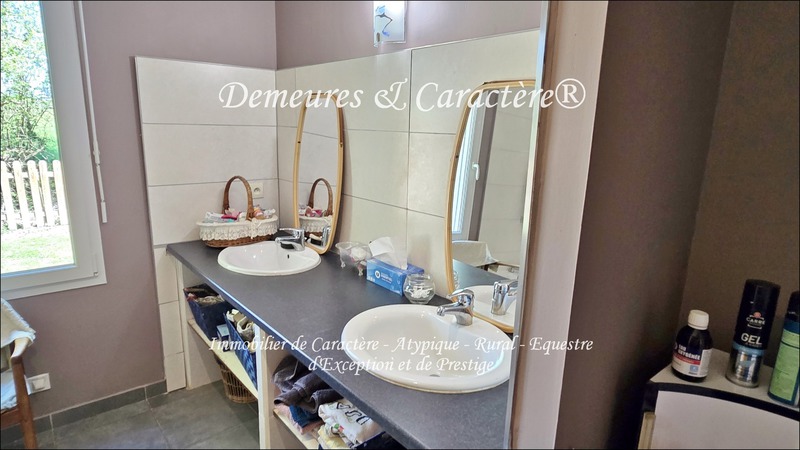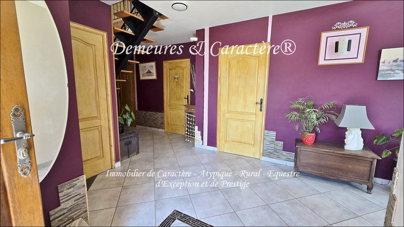 La maison en très bon état général est équipée d’un plancher chauffant intégral au RdC, alimenté par pompe à chaleur et radiateurs type radian à l’étage ; huisseries double vitrage (OB en partie) ; volets roulants électriques en principal ; doublage et isolation de qualité (DPE en C) ; 2 VMC ; cuisine équipée récente et salle de bain rénovée ; sol carrelage intégral en RdC et parquet à l’étage ; ANC conforme ; système d’alarme ; garage intérieur communicant ; jardin clôturé autour de la maison avec 2 terrasses ; préau et parc à chien (espace en herbe clôturée et ombragé) communicants ; fibre haut débit internet raccordée (et réseau 4/5G selon opérateur) ; eau de ville + compteur herbage pour la partie équestre et les extérieurs ; etc etc...