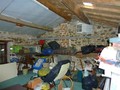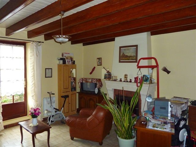Rez-de-chaussée: Salle de vie avec grande cheminée et système tifon, petite cuisine, pièce à usage de chambre et bureau avec cheminée insert, salle de bain avec wc.
