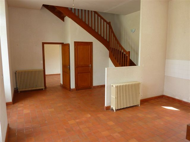 Rez-de-chaussée sur carrelage: Belle entrée traversante avec rangement, salle de vie avec cheminée, cuisine, salle d'eau, wc séparé. Très belle hauteur sous plafond.