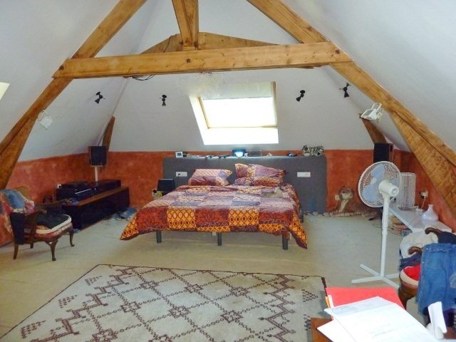 Etage pour environ 160m²: Grande salle de vie en salon-salle à manger sur cuisine ouverte à l'américaine, 1 petite chambre, 1 grande chambre avec dressing, 1 salle de bain, 1 wc séparé, 1 rangement.