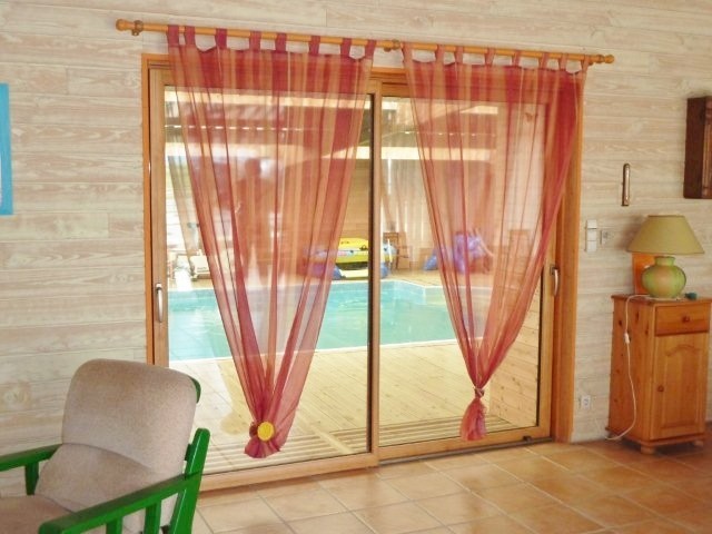 Salon piscine couverte de 130m² abritant bassin de baignade 40m² avec escalier balnéo, nage à contre courant et chauffage par pompe à chaleur.