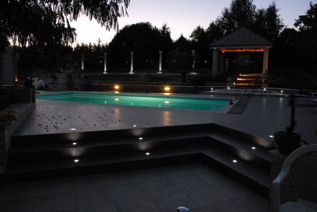 Piscine: Bassin 10 x 5m, petit et grand bain, accès par escalier, chauffée par pompe à chaleur, traitement sans chlore, éclairage bassin, robot polaris.
