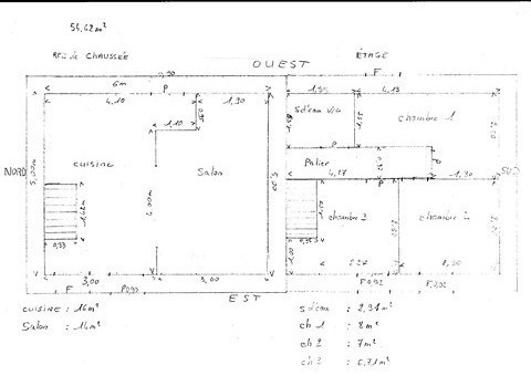 Etage: 9 pièces (chambres), 2 salles d'eau avec wc.