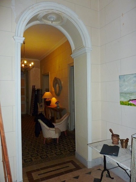 éléments d'époque: Hall d'entrée traversant sous arcade plein cintre, nombreuses cheminées et trumeaux de cheminée, corniches, puits de lumière sur cage d'escalier, sol carrelage ancien et parquets