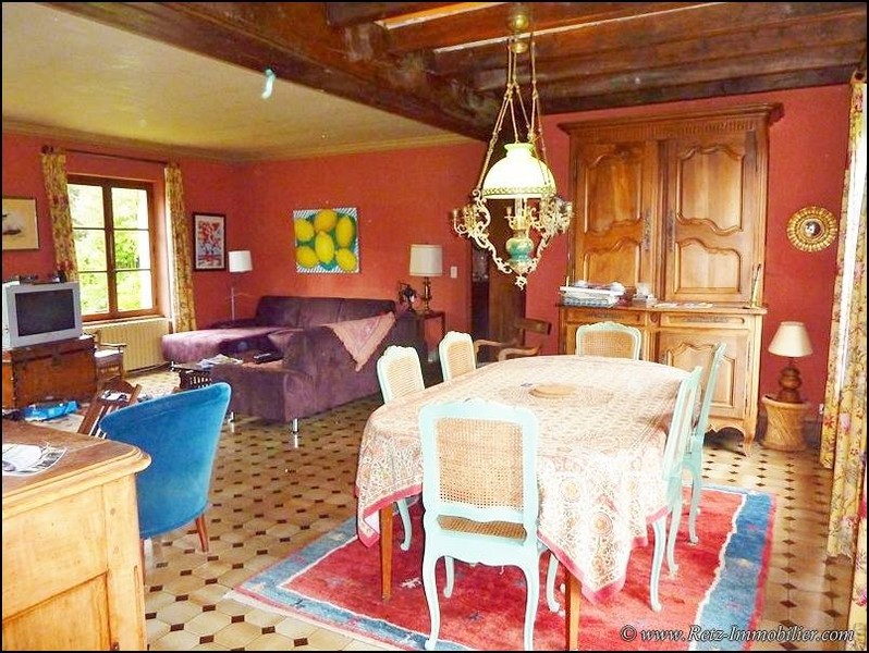 44 - Dans un superbe environnement cette longère qui a bénéficié d'une excellente qualité de construction offre 260m² habitables en 2 logements confortables proposant 3 chambres chacun. Possibilité d'évolution (grenier et petites dépendances contiguës). Bâtiment secondaire à usage de garage et cave à vin... Magnifique jardin paysagé et arboré... Le calme absolu aux portes de la ville sans être totalement isolé.