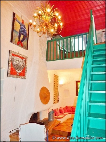 Rez-de-chaussée (logement2 style moderne): Entrée indépendante depuis l'extérieur (+ communication vers couloir Logement 1) dans petit salon de style mauresque avec cheminée, escalier vers l'étage avec jolie cuisine AE en mezzanine.
