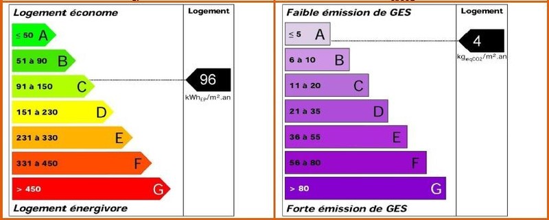 Confort: Plancher chauffant hydraulique intégral (RdC + étage) par aérothermie réversible, menuiseries bois / alu, volets roulants électriques, assainissement autonome conforme, ADSL, aspiration