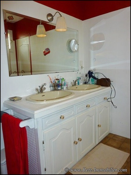 accès jardin, 2 wc indépendants, lave mains, 1 grande salle de bain (2 vasques, douche, baignoire & rangement), 4 chambres dont 2 avec rangement, 1 avec rangement et cabinet de toilette, 1 avec