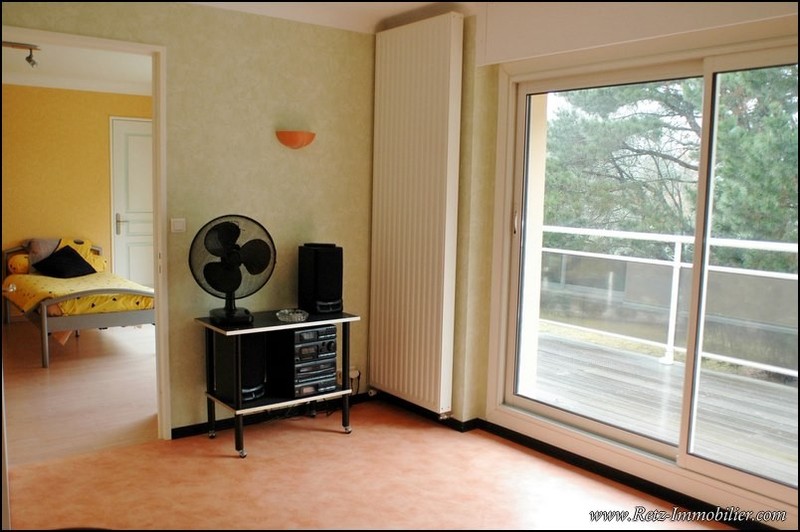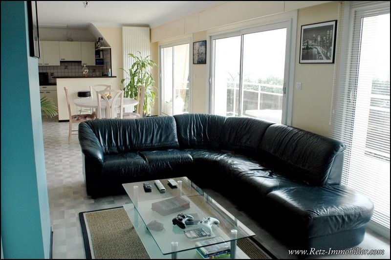 disposant d'un cabinet de toilette et balcon, chambre 7 avec salle de douche (vasque sur meuble et douche) face à un séjour double comprenant cuisine américaine, l'ensemble sur grand balcon