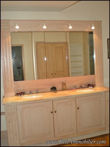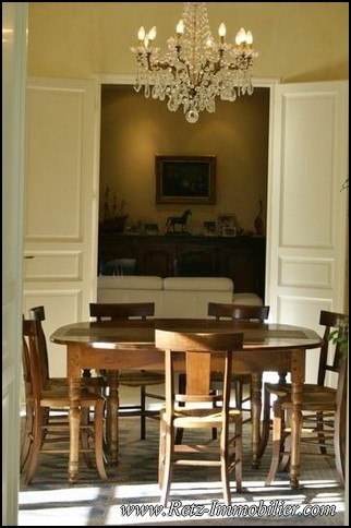 lingerie avec nombreux rangements, réserve, chaufferie, dégagement, bibliothèque, salon avec cheminée et accès terrasse expo Sud, salle à manger en enfilade avec accès terrasse expo Sud.