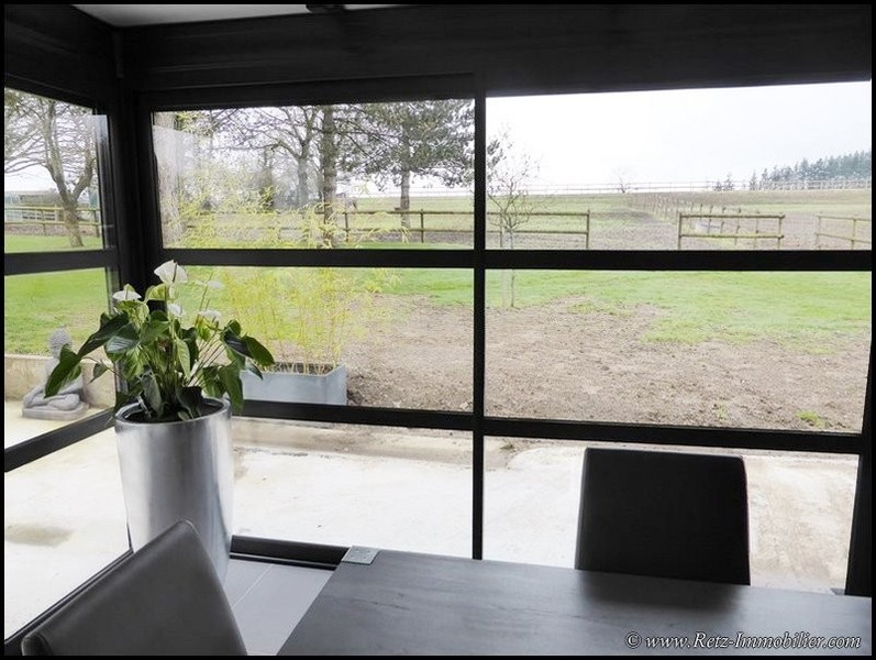 pâtures chevaux), accès terrasse et jardin par verrière entièrement ouvrante, salon, 3 chambres dont 1 avec dressing, 2 avec rangements, 1 avec coin bureau + accès indépendant, salle d'eau (douche