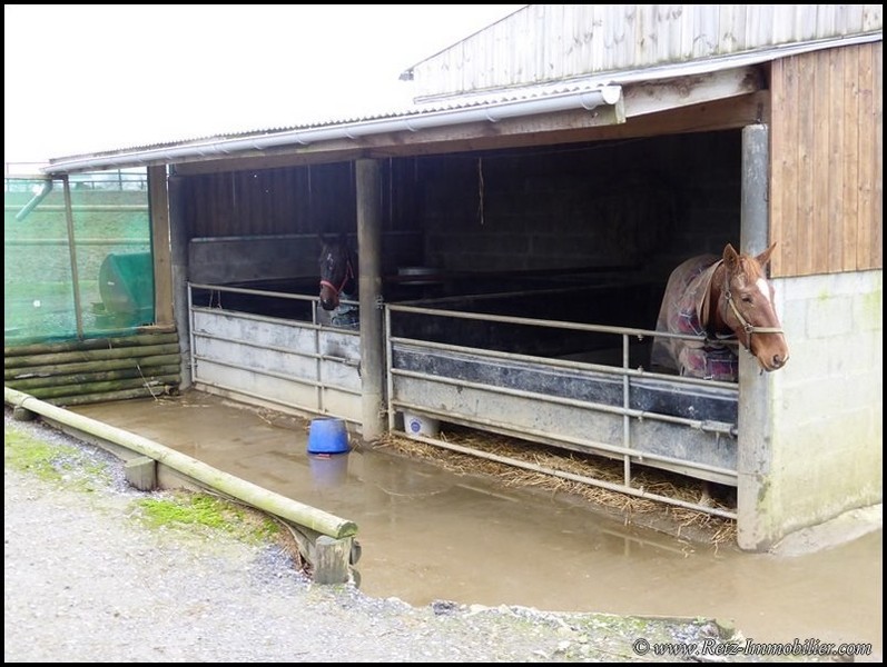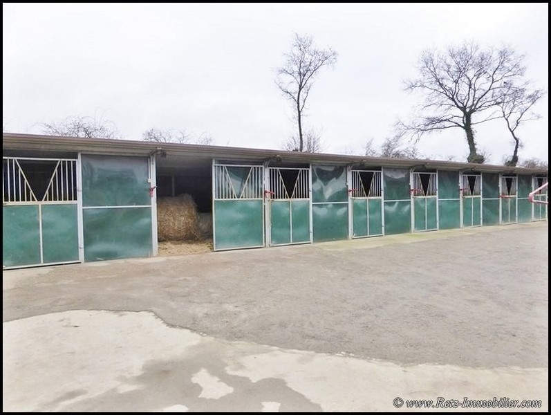 Proche Chateaubriant, propriété de 7,5 hectares offrant infrastructures équestres en bon état, piste sablée, prairies clôturée de lisses en bois, dépendances, logement d'appoint et maison
