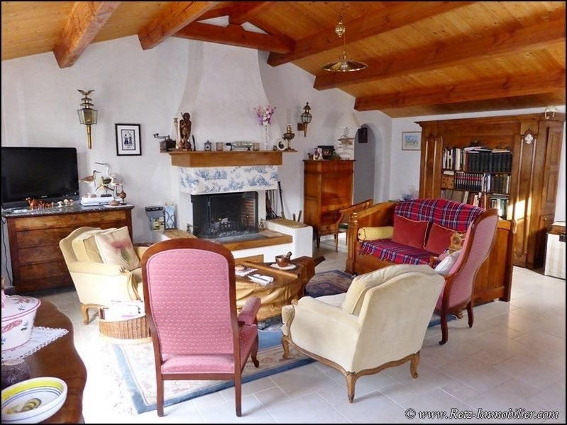 Petite entrée en couloir desservant cuisine AE et espace repas ouvert sur terrasse SUD et patio, spacieux séjour et salle à manger avec cheminée et accès terrasse barbecue sous store banne, 3