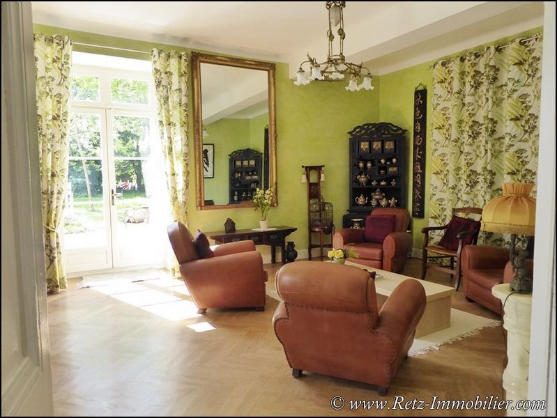 44 - Proche d'une ravissante Cité de Caractère, au calme, sur les hauteurs de la Loire, très belle propriété composée d'une demeure entièrement rénovée offrant 310m² habitables dont 5 chambres et beaux espaces de vie, remarquable parc paysagé de nombreux rosiers et autres essences, verger et potager, dépendances, installations et prairies pour chevaux, petit bois, kiosque à musique, plans d'eau, tennis... Ce bien a bénéficié d'une rénovation intégrale de qualité.