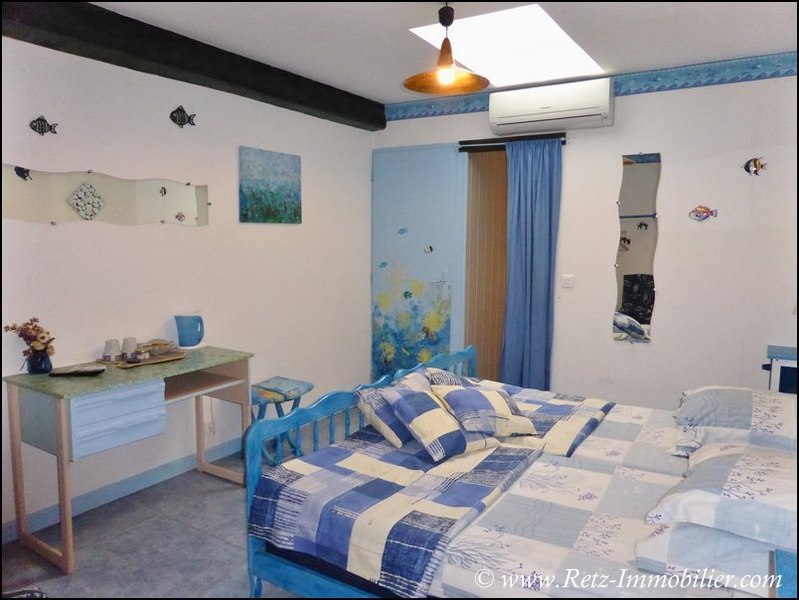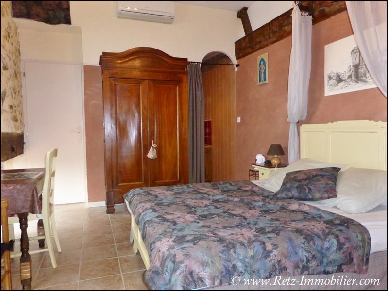 Rez-de-chaussée : Entrée, bureau en alcôve, wc séparé, cuisine AE ouverte sur vaste séjour-salle à manger (poêle à bois) avec accès terrasse et accès vers piscine intérieure, couloir desservant chambres 1,2 et 3 + salle de douche (douche, double vasques), salle de jeu avec mezzanine, chambre d'amis (4), cuisine d'été ouverte sur terrasse et piscine intérieure, 2 chambres (5 & 6) avec chacune salle d'eau privative et wc séparé, chambre 7 en studio autonome accessible aux personnes à mobilité réduite, ancienne chaufferie pouvant être aménagée.