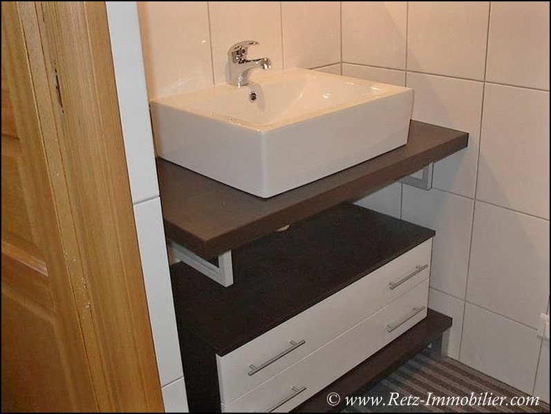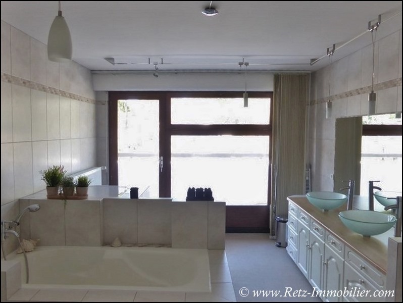 vasques, douche balnéo, baignoire, wc, espace buanderie, accès terrasse), wc indépendant.