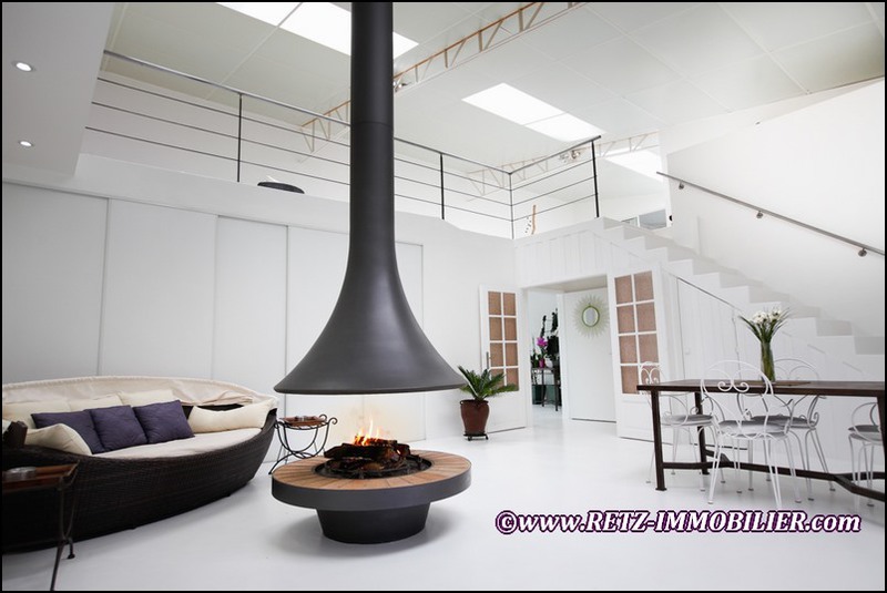 Loft avec cheminée suspendue, bar, jeux de lumière LED, ambiance musique/vidéo 63m² et 7m hauteur + vue et accés étage dont mezzanine Loft en partie.