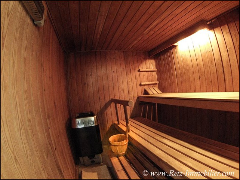 Rez-de-chaussée: Entrée spacieuse communicante vers loft ou appartement, bureau équipé ethernet, cuisine d'hiver AE, salon (40m²), espace sauna en bois de Finlande, 3 chambres