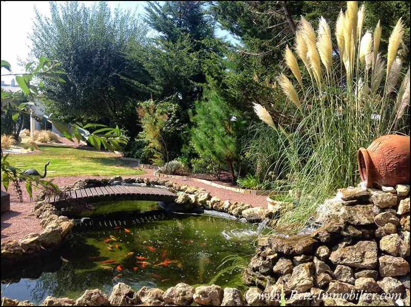 pompage et arrosage automatique du jardin et du potager, magnifique terrain paysagé avec aménagements remarquables, terrasse + terrasse couverte...