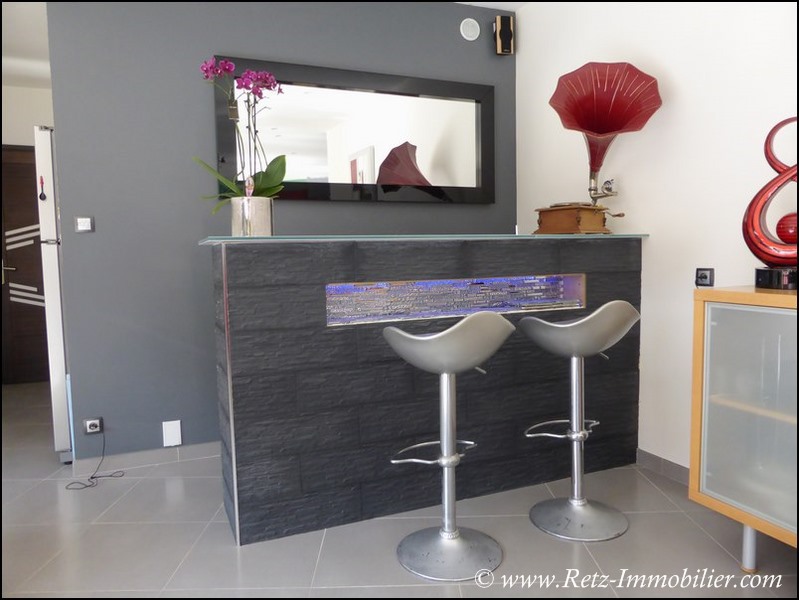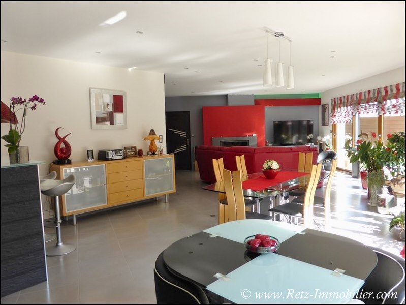 cheminée insert 16/9ème, différents espaces repas / salle à manger, bar, superbe cuisine AE communicante avec la terrasse, arrière cuisine (avec communication vers cave à vin & garage), suite