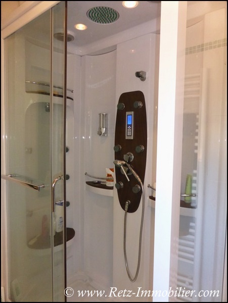 Étage: Palier, chambre 2 avec grand rangement et balcon, chambre 3 avec grand rangement et balcon, salle de douche (vasque, sèche serviette, grande cabine de douche sonorisée avec