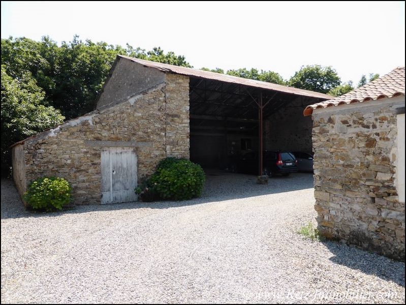 Hangar 200m² (en pierre + charpente métallique) à usage de parking couvert pour plusieurs véhicules, 2 boxes dont un en stabulation libre, espace de stockage,