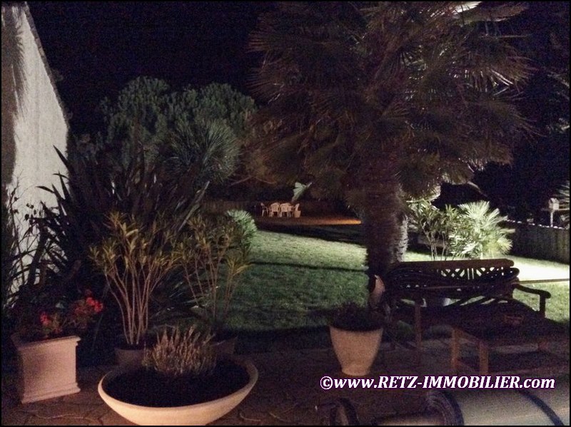 Terrain clos et paysagé (palmiers et différentes plantes...), l'ensemble pour 950m² dont 170m² en terrasse + plage de piscine, le reste en pelouse avec petite terrasse dinatoire en opus de marbre.
