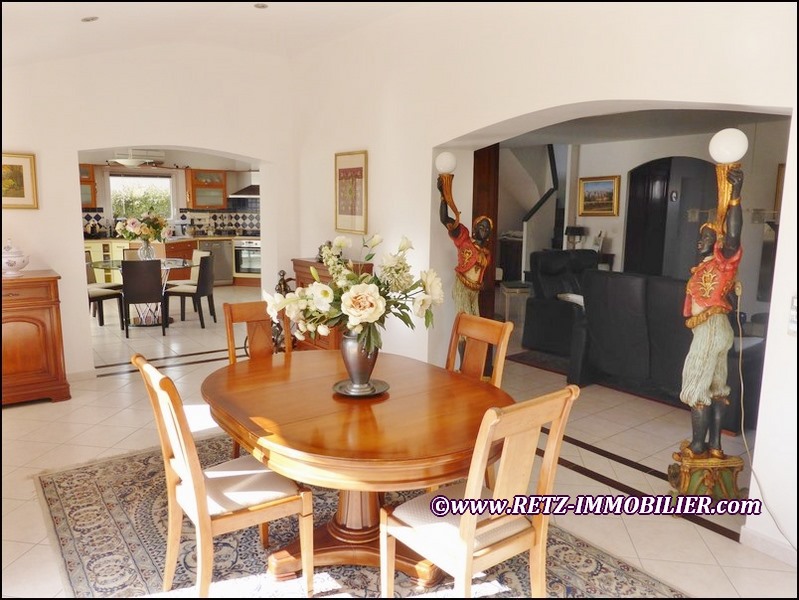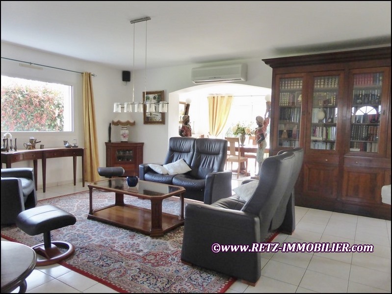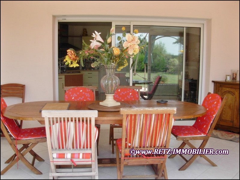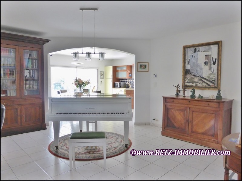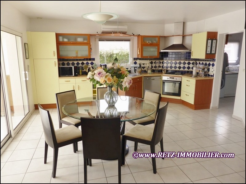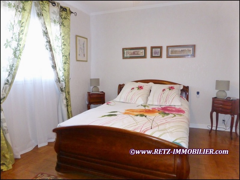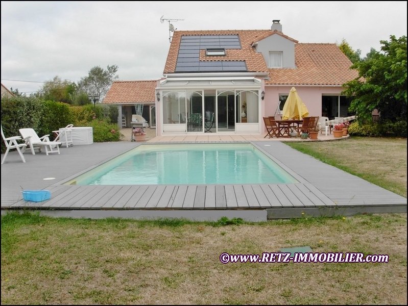 44250 Confortable maison à vendre au calme proche plage et commodités, 5 chambres dont 4 suites (2 en RC), séjour cheminée, belle cuisine AE, grande terrasse, jardin clos, piscine chauffée, dépendances... Contrat rachat ERDF 2300€/an. Maison de qualité à vendre par Retz-Immobilier.