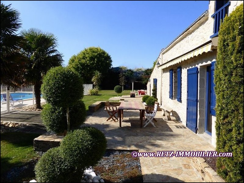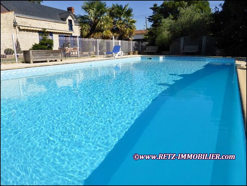 Charmante maison en pierre apparente, 4 chambres dont une suite, superbe jardin clos avec piscine, garage, carport, possible prairie pour chevaux 2 hectares, à vendre aux portes de NANTES Nord Loire, proche SAUTRON, SAINT ETIENNE DE MONTLUC, 44.
