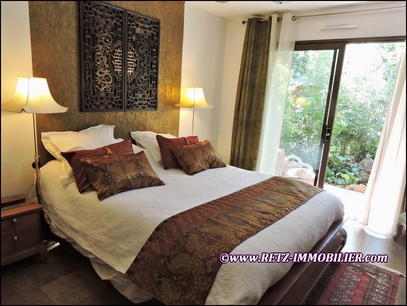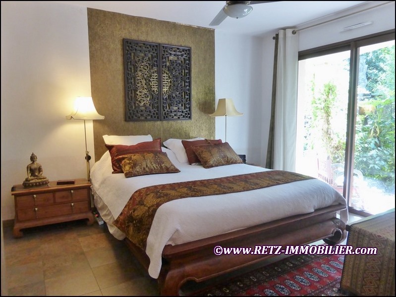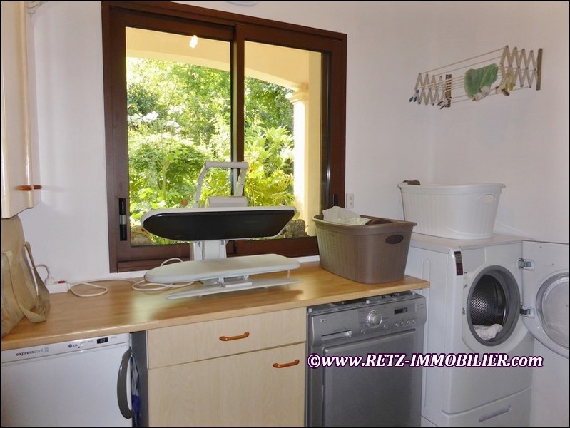 Rez-de-chaussée: Hall d'entrée avec rangements vestiaires; véritable salle bibliothèque; salon avec poêle à bois céramique, ouverture sur terrasse Ouest et communication à l'espace piscine couverte et chauffée; salle à manger avec nombreux rangements, ouverture vers terrasse Ouest, ouverture vers terrasse sud sous pergola et store banne; cuisine AE haut de gamme avec accès terrasse Ouest et ouverte sur salle à manger; dégagement; wc indépendant avec lave mains; chambre 1 avec large baie sur terrasse Sud-Est et jardin exotique; dressing; salle de douche (vasque, douche italienne, sèche serviette et porte fenêtre sur jardin exotique); chambre 2 ou grand bureau; petit bureau (possibilité création SdE); lingerie / réserve; communication vers garage et atelier.