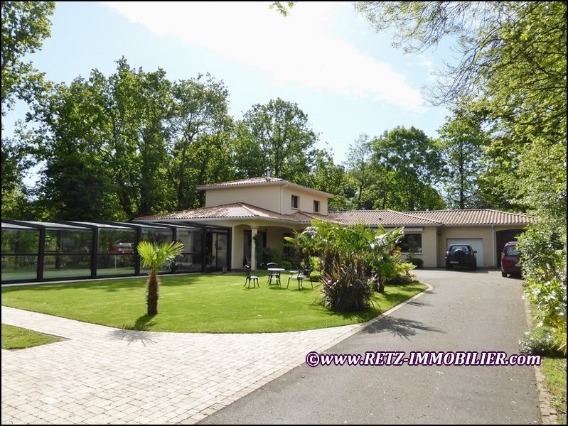 44850 LE CELLIER - NANTES (périphérique) à 15mn; Belle demeure contemporaine (2013), excellentes prestations, aucuns travaux à prévoir. 200m² habitables dont 160 de plain-pied, 4 chambres, cuisine AE haut de gamme, bibliothèque, ... Piscine couverte chauffée communicante à la maison, terrasses teck, exceptionnel jardin paysager et exotique,... Belle affaire!