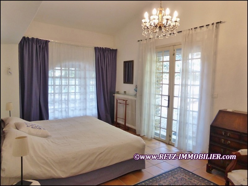 Rez-de-chaussée: Hall d'entrée; séjour avec cheminée traversant et ouvrant sur grande terrasse couverte, salle à manger et bibliothèque, bureau, cuisine avec accès terrasse extérieure, office avec grands rangements et large ouverture vers terrasse couverte, chaufferie, dégagement avec WC indépendant, chambre 1, salle de bain (vasque, bain, bidet), chambre 2 avec cheminée, salle de douche (double vasque, douche italienne, wc séparé), chambre 3, salle de bain (double vasque, bain, wc).