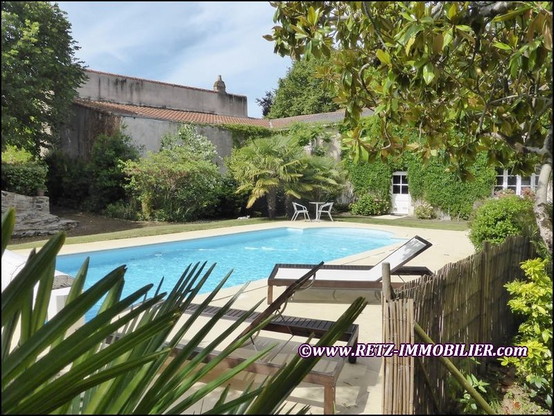 44 PAYS DE RETZ, 10km plages, toutes commodités à pied, bénéficiant d'une belle vue dégagée sur La Loire (avec possibilité de place au mouillage pour bateau), BELLE DEMEURE de 1749, 325m² hab., excellentes prestations, beaux volumes, luminosité, 5 chambres, 4 SdE, salle de cinéma, garages, grandes dépendances attenantes aménageables (pour extension ou gîtes, bureaux, profession libérale, atelier d'artiste, etc)... Panneaux thermiques et photovoltaïques. Cadre reposant et très agréable offrant un superbe cadre de vie, l'ensemble sur 2154m² avec piscine chauffée, puits, jardin, ...
