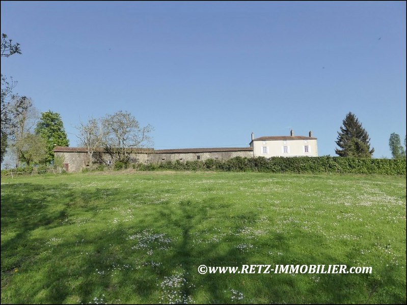 VENDEE - Au calme d'une très agréable bourgade offrant toutes commodités, Propriété de caractère à vendre, 200m² hab., piscine et nombreuses dépendances (570m²) en pierre. Superbe vue dominante, calme, authenticité, grand potentiel, sur 4 hectares. Plages et port à 45mn, LA ROCHE SUR YON 20mn, CHALLANS 25mn, NANTES 30mn.