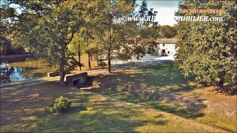 Extérieur : Belle allée privée d'accès, petit pont de pierre, parc arboré, grand parking d'accueil stabilisé, terrasses sud et ouest, espace barbecue, jardin paysagé, petit cour d'eau et étang poissonneux (sans aucun risque d'inondation), puits, bel ensemble pour 2,13 hectares. Environnement calme, verdoyant et privilégié à quelques minutes de NANTES et de toutes les commodités.