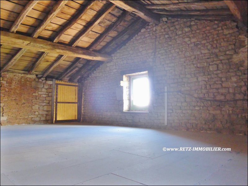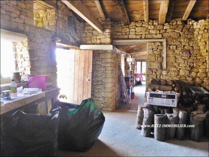 - 4 belles pièces aménageables pour création 135m² d'habitation (devis matériaux et travaux par artisans = 47 000 €) dont salle avec cheminée ancienne et potager, poutraison sablée, à l'étage plancher neuf avec isolation phonique et charpente sablée, ...