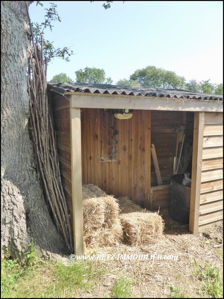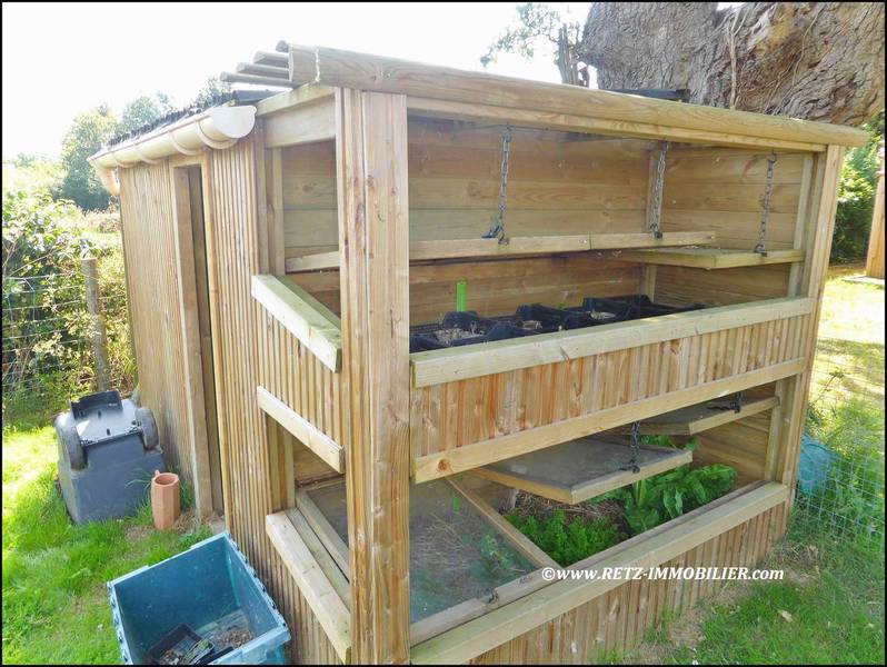 Dépendances : Coin barbecue plancha couvert ; Abri bois et stockage ; Abri vélos ; Atelier de bricolage ; Atelier jardinier/potager ; Mini serres de semis bouturage ; Aire de jeux pour enfants dont cabane aménagée, piscine à balles, tobogan, ... ; Fosse étanche (pour récupération des eaux de pluie) avec système d'alimentation du potager bio ; Poulailler clos ; Niches et divers.