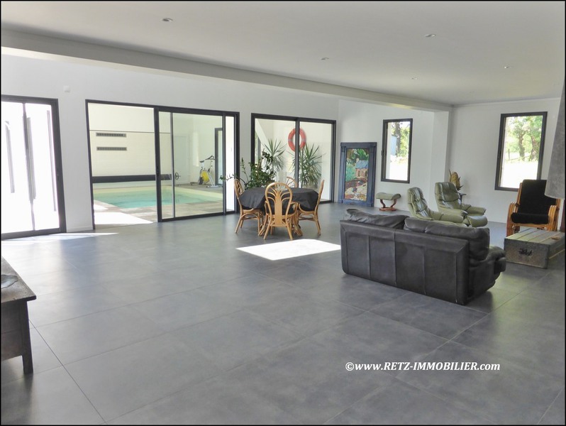 Technique moderne et grand confort, superbes séjour et cuisine ouverte communiquant avec le patio, le jardin et la piscine intérieure chauffée.