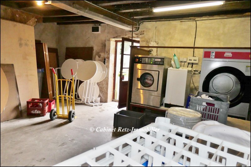 - Bâtiment à usage de salle de réception / fête / mariage pour 306m² et accueil / bar professionnel 56m², office traiteur 50m² comprenant fourneaux et hôtes, petit bar, accès terrasse, sanitaires, vestiaire, scène/estrade, cheminée monumentale, …