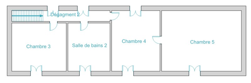Étage : Palier ; Chambre 3 avec rangements ; Salle de douche (2 vasques, douche italienne, sèche-serviette, WC) ; Chambre 4 avec cheminée décorative et, en enfilade, grande pièce avec rangements et charpente apparente pour possible chambre 5 ou dressing/bureau/atelier…
