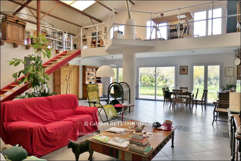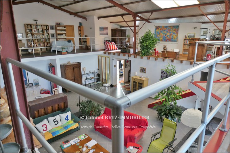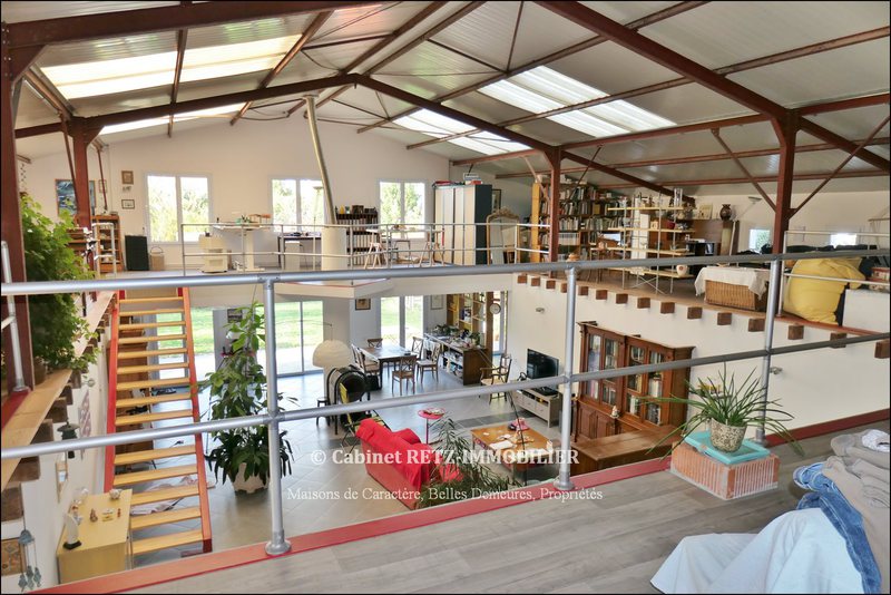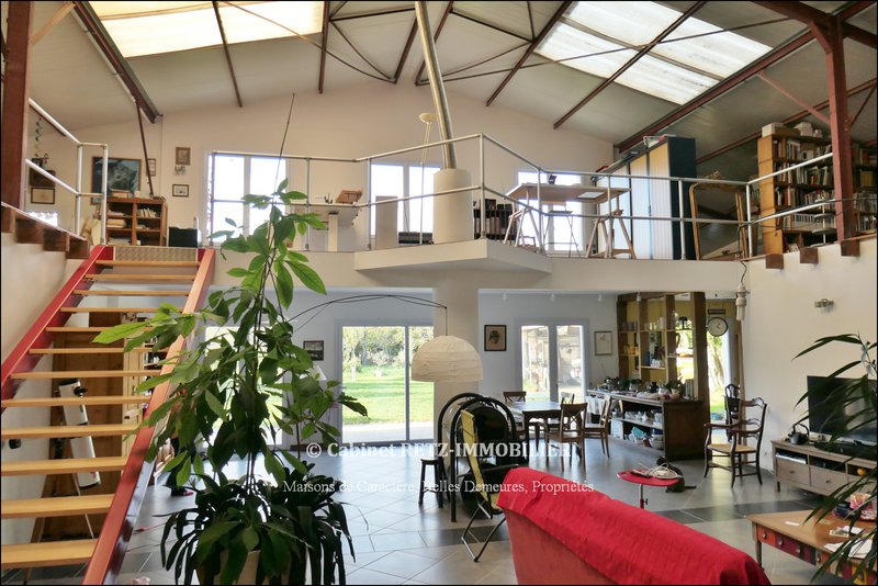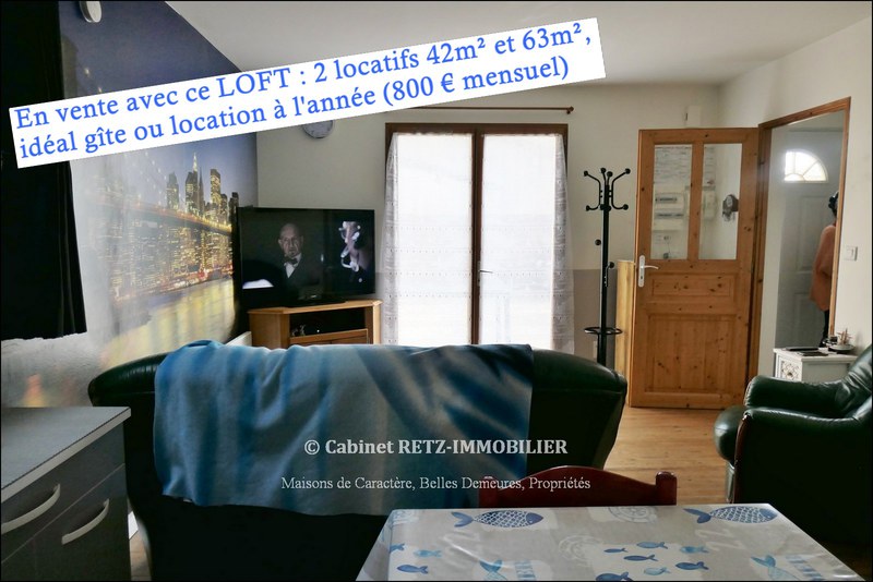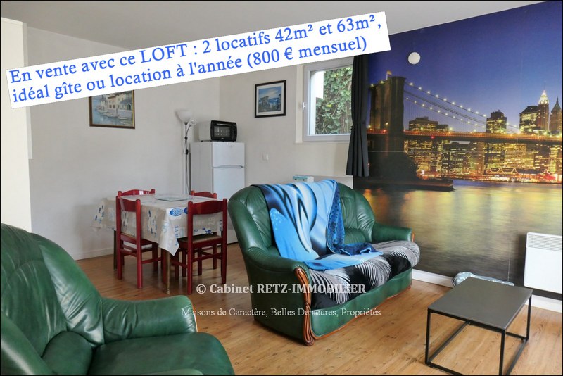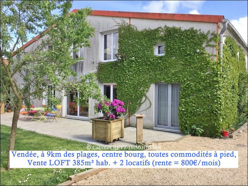 Vente LOFT spacieux et lumineux avec ses 2 logements locatifs (gîtes) sur 2732m² en centre-bourg. Commodités à pied et plages à 9km. Ancien bâtiment industriel réhabilité par architecte en LOFT offrant 385m² hab. dont 4 ou 5 chambres, bureau, atelier, …, beaux volumes ouvrant sur terrasse, jardin avec puits, potager, verger, … + 2 maisons-appartements avec cour pour location traditionnelle ou saisonnière, gîtes.