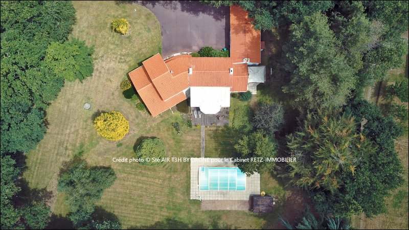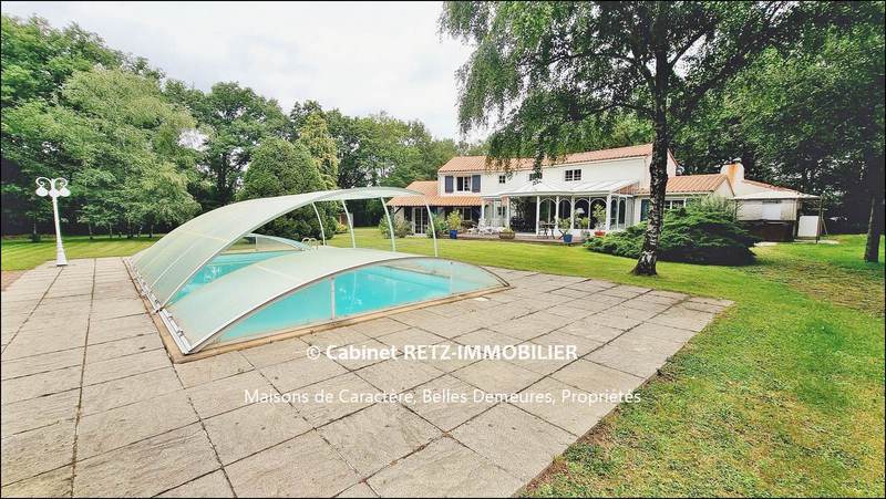 25 mn NANTES & LA ROCHE / YON ; Cadre de vie privilégié pour cette Propriété sur 2,77 hectares au calme, à l’abri des regards, à 1200m des commodités. L’ensemble comprend Maison 264m² hab. dont suite parentale en RC, pièce de vie ouverte sur spacieuse verrière chauffée/climatisée, bureau, espace convivial avec bar, etc... Terrasse, piscine, jacuzzi, parc boisé éclairé, prairies, étang, garage, parking, chenil, puits, boulodrome, … Offre rare !