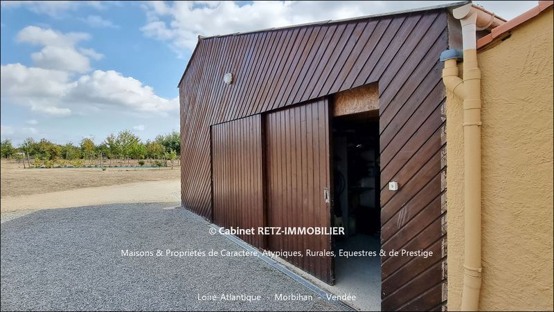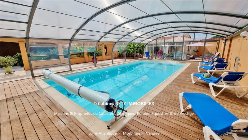 Vente Propriété exceptionnelle sur 3,8 hectares aux portes de NANTES, entièrement de plain-pied, Maison principale 180m², Maison d'amis ou gite 55m², piscine couverte chauffée, garage, carport, très grandes dépendances offrant grand potentiel pour privé ou professionnel (pour atelier d'entreprise ou d'artiste, collectionneur de véhicules, propriétaire de chevaux, ...), + terrasses et jardins paysagés, bois, prairie, abris, puits, pièce d'eau, ... Ensemble clos et sécurisé, en parfait état, offrant un très haut niveau de technique et de confort. Offre rare.