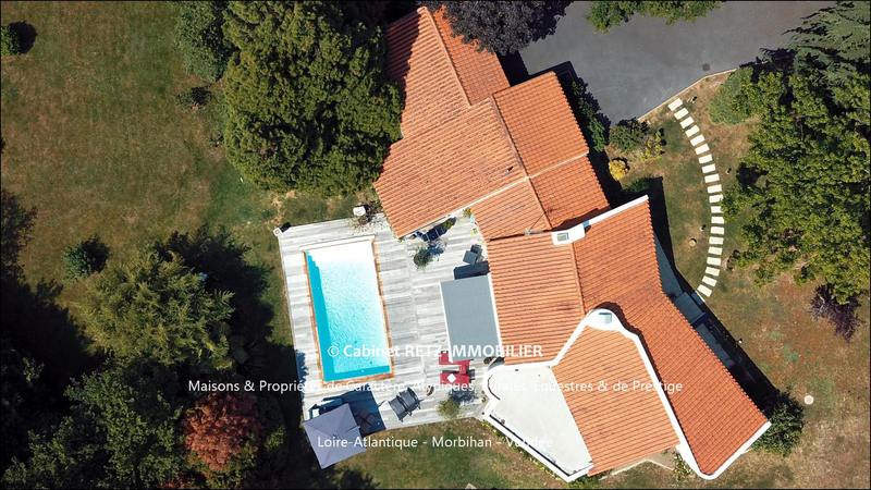 Confort et technique : Maison d’architecte de plain-pied (2 marches tout de même), construction traditionnelle soignée ; Isolation murale LV ; Isolation supérieure soufflée (2017) ; Cloisons en brique plâtrière ; Ravalement de 2020 ; Couverture de 2017 ; Accès par portail télécommandé ; Visiophone ; Accès et circulation en enrobé (2018) ; Huisseries aluminium double vitrage ; Baie coulissante de la suite parentale en verre sans tain ; Volets roulants électriques programmables et centralisés ; Décoration intérieure de 2016 ou plus récent ; Cuisine SCHMIDT de 2016 entièrement aménagée et équipée d’appareils haut de gamme, dont cave à vin bi-zones, et de plans de travail en granit ; Cheminée insert de 2017 pour l’agrément et participant néanmoins activement au chauffage ; Chauffage central ; Chaudière BOSCH à condensation (2016) énergie Fuel ; Radiateurs en fonte d’aluminium (2016) en principal ; Électricité aux normes ; Salle d’eau et salle de bain rénovée en 2016 avec mobilier de chez AUBADE ; Eau de ville ; Assainissement autonome (ANC) en parfait état de fonctionnement mais présentant néanmoins une non-conformité, il y a lieu de noter que le réseau communal d’eau usée (tout à l’égout) est prévu dans le hameau mais la date de réalisation est inconnue à ce jour ; VMC ; ECS produite par la chaudière ; Piscine au sel automatisée ; Terrasse et plage de piscine uniformes en bois exotique avec lampes intégrées ; Store-banne électrique ; Réseau 4G OK ; Fibre raccordée ; Garage carrelé avec rangements et faux-grenier ; Carport ; Secteur prisé ; Maison unique/atypique et de belle gamme ; Vues et cadre de vie superbes ; Excellente desserte depuis NANTES, les plages, ST HERBLAIN et le Nord Loire ; Dossier de factures des travaux et garanties décennales à disposition.
