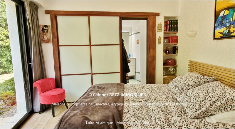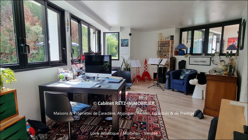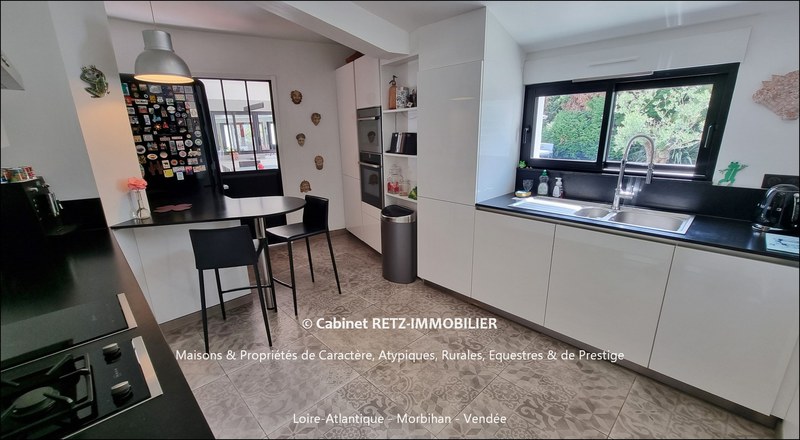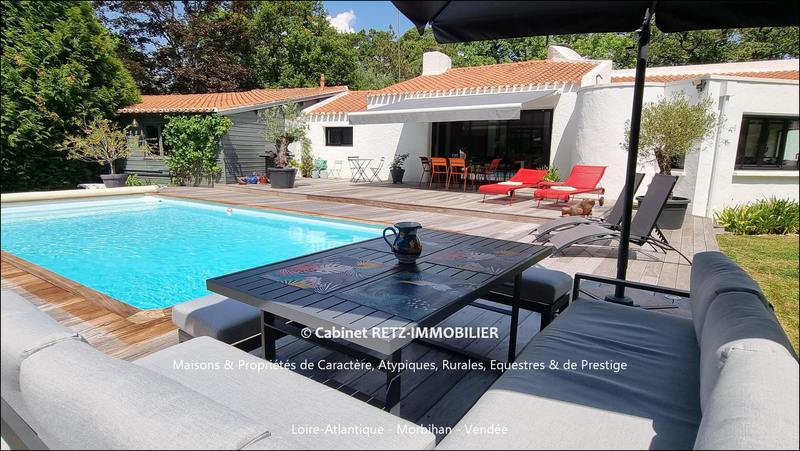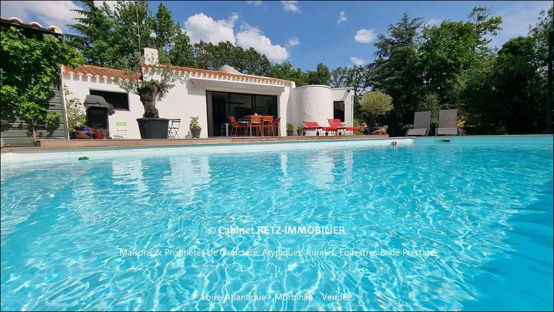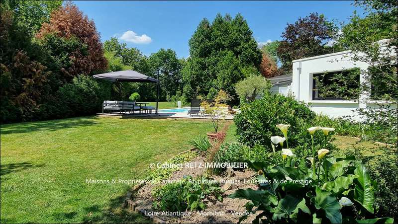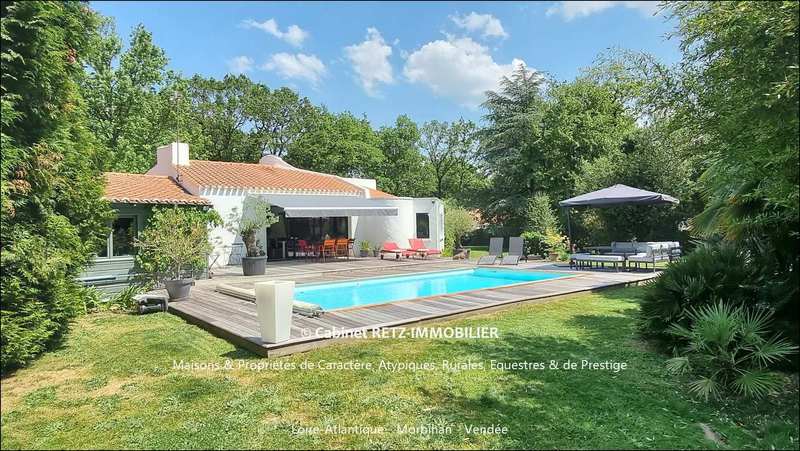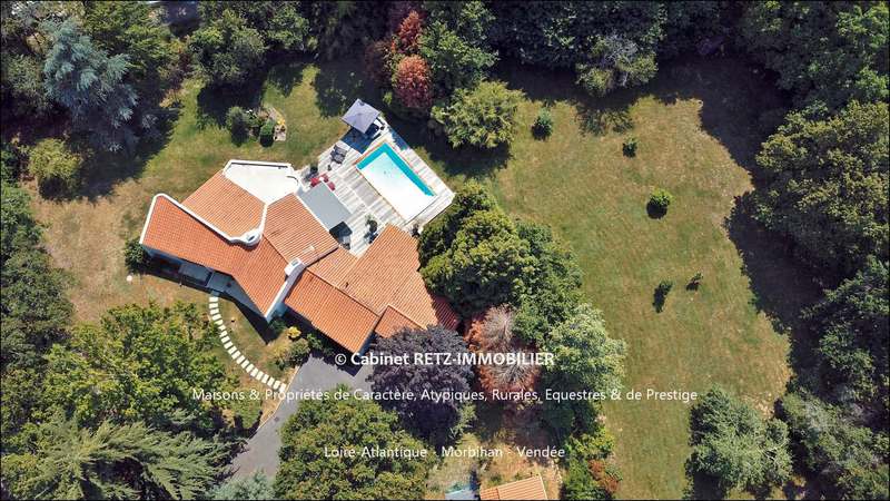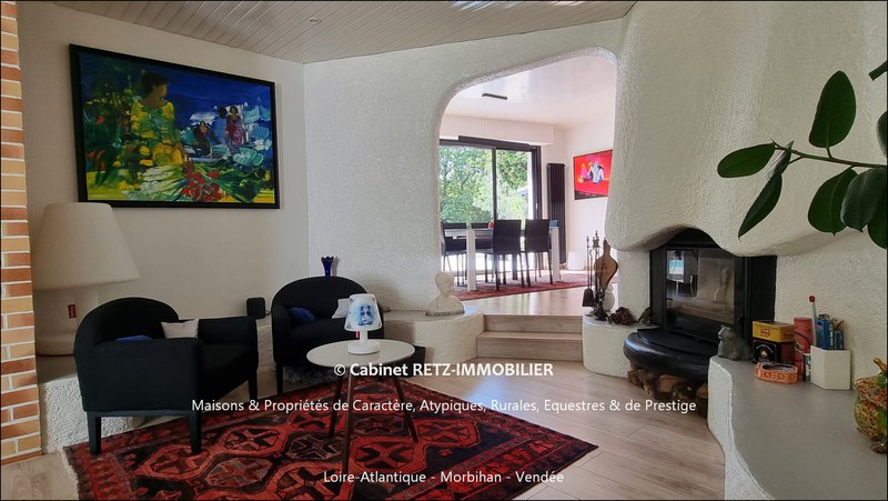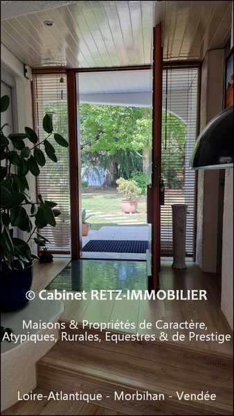 Le Cabinet Retz-Immobilier vous présente cette Maison d’architecte unique, atypique et très réussie, édifiée de plain-pied et implantée au cœur d’un écrin de verdure.