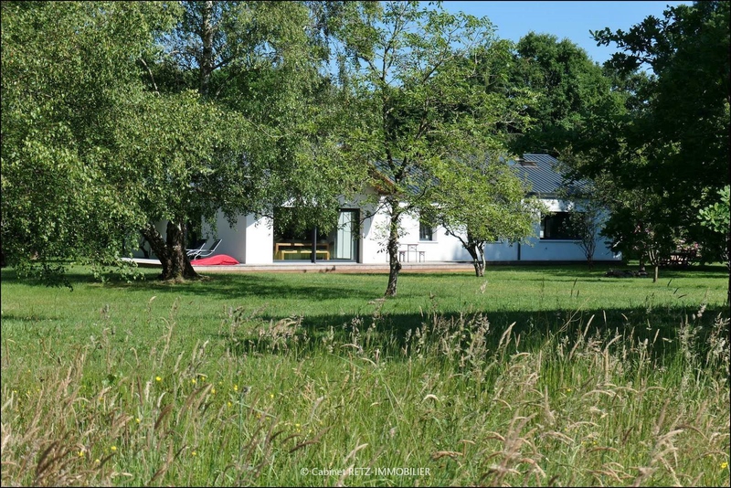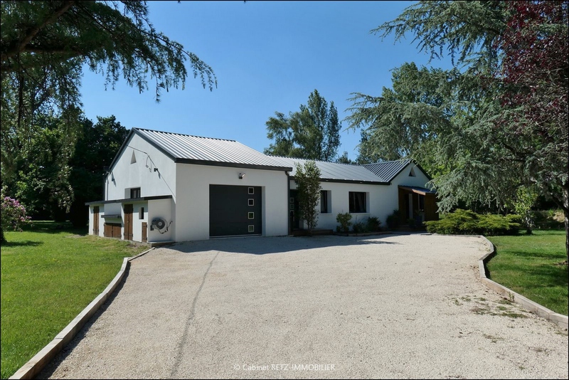 44 – Rare aux portes de NANTES : Vente, sur 1,5 hectare, confortable Maison presque entièrement de plain-pied offrant prestations contemporaines dans un écrin de verdure dont parc arboré, prairie et pièce d’eau. Environ 170m² habitables comprenant remarquable salle de vie avec cuisine ouverte, 3 chambres dont 1 suite parentale, bureau, salle de détente & divers ; Terrasses, parking extérieur, garage, …
